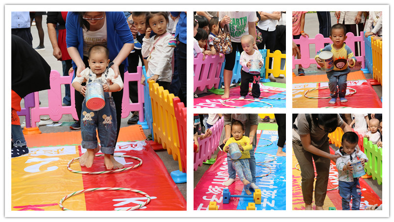 宝贝们干劲十足,穿越一个个障碍物,向着终点努力奔跑,赢得心中的胜利。